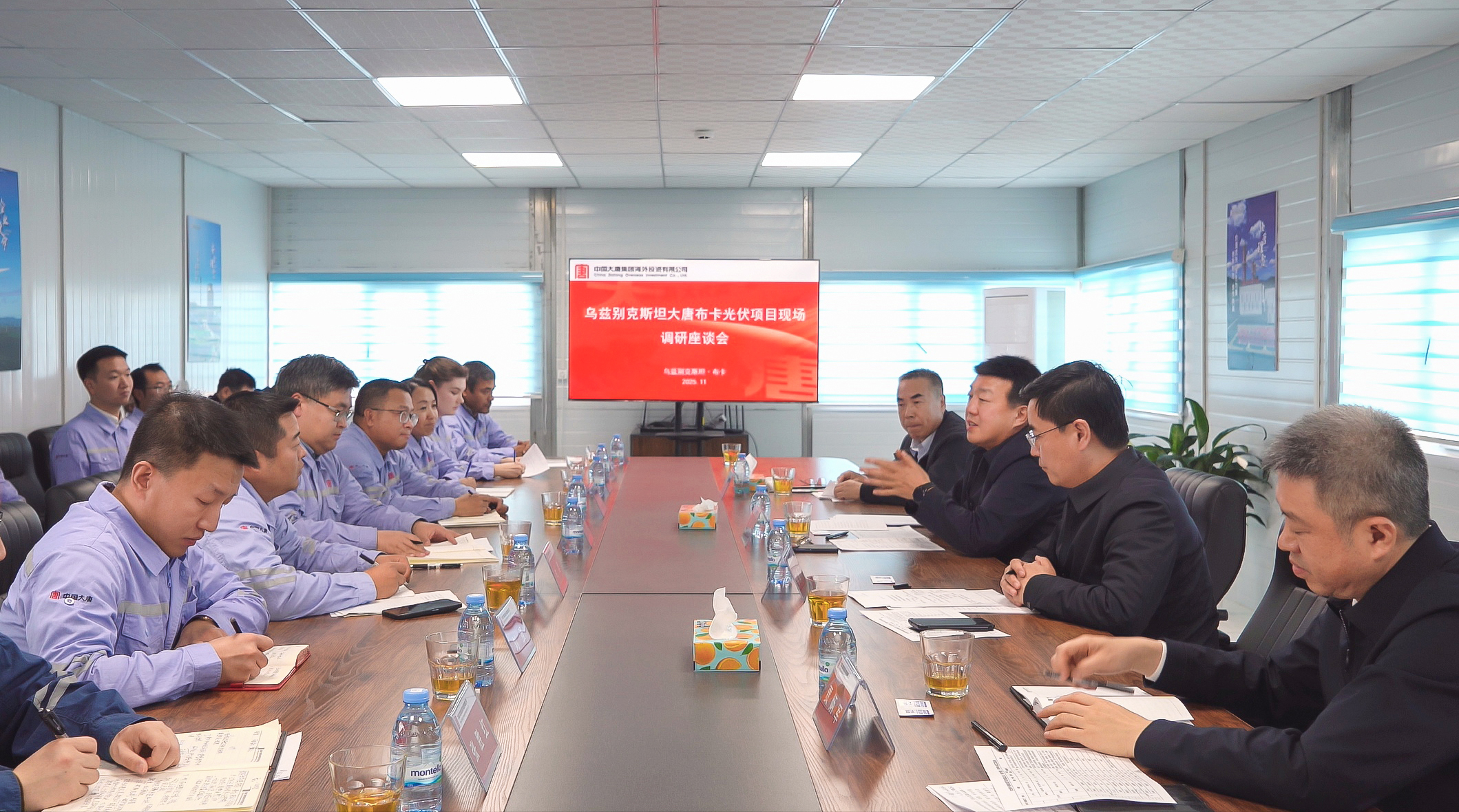 外地时间11月10日至11日, ,,,,,,吕军划分前往大唐乌兹别克斯坦布卡光伏项目、中亚代表处、布卡二期光储项目妄想建设地块考察调研, ,,,,,,深入光伏厂区、中控室等地详细相识生产运行情形, ,,,,,,探望慰问项目一线干部职工, ,,,,,,并加入布卡项目现场调研座谈会。。。。。。。