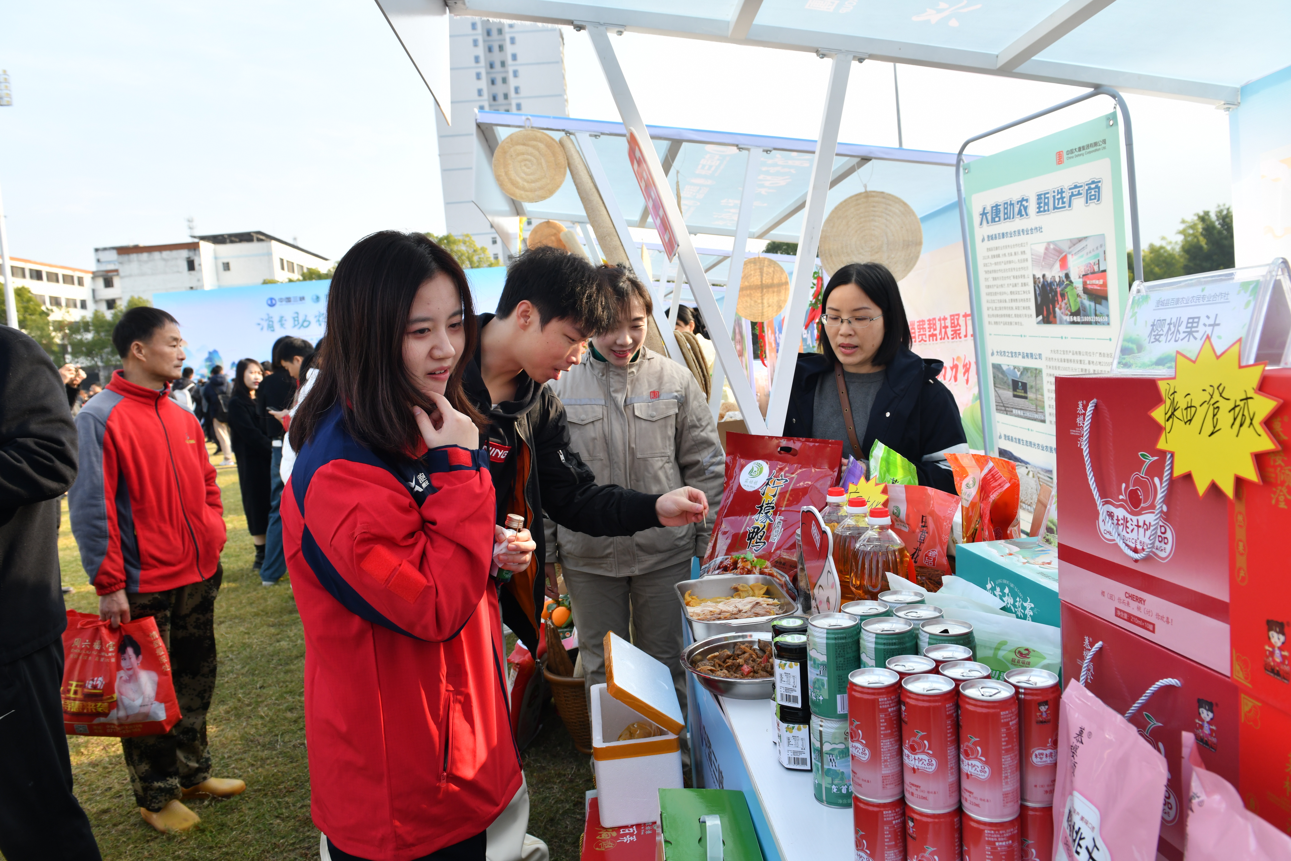 在中国大唐展位,,,,,,甄选了来自中国大唐定点帮扶的广西大化瑶族自治县、陕西澄城县的20余款特色商品举行现场展销。。。。。。湖北省巴东县沿渡河电业生长有限公司起劲组织外地职工倾力驰援,,,,,,职工们化身“销售员”,,,,,,热情地向旅行者先容参展产品的特色。。。。。。大化七百弄盐焗鸡、柠檬鸭香味扑鼻,,,,,,澄城秋梨膏、樱桃汁令人垂涎欲滴,,,,,,吸引了大宗消耗者驻足品尝购置。。。。。。